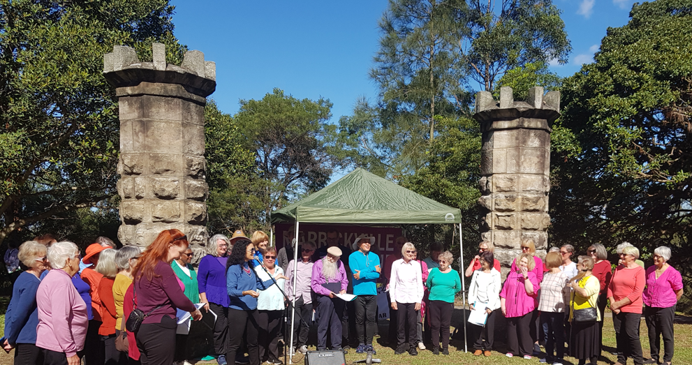 The Inner West’s Anzac Day Reflection was held at the traditional site of Richardson’s Lookout – Marrickville Peace Park on Thursday 25th April. Organised by the Marrickville Peace Group (MPG), it attracted over 100 people. In addition, a combined choir, assembled from three local choirs and comprising around 40 singers, sang a number of peace songs during the event.