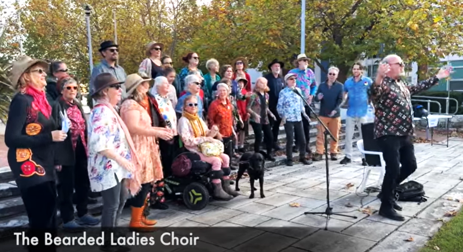 After the Acknowledgement of Country, the Bearded Ladies Community Choir from Katoomba, comprising 25 singers and led by Michael Macken, sang ‘The whole world is dreaming’ by Mark Seymour.