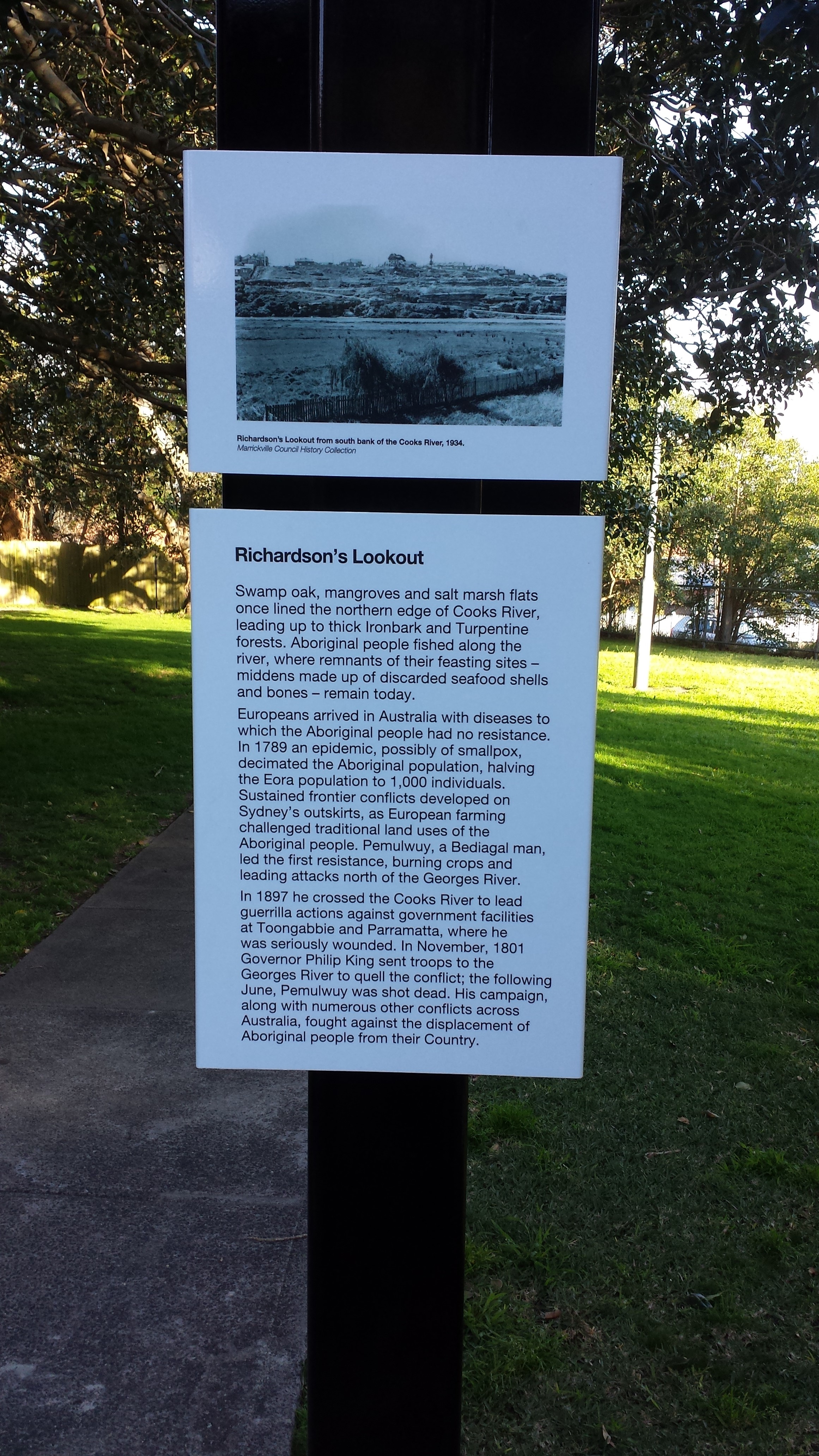 It is particularly pleasing to see that the new signage acknowledges the role of Pemulwuy as a leader of Aboriginal resistance to European invasion and the dispossession of the Indigenous people.